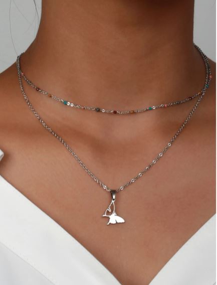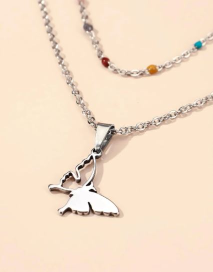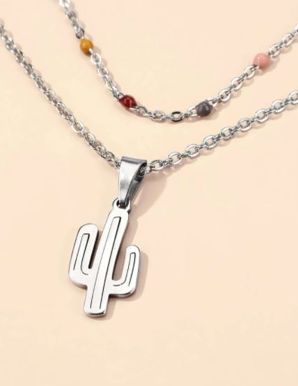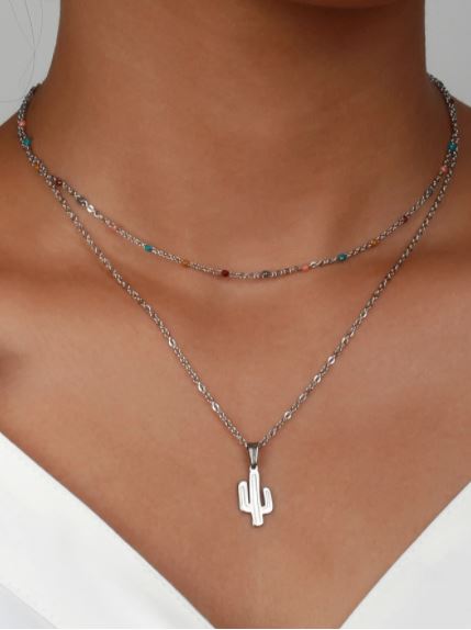 Collares de cadena estilo casual, color plateado, se encuentran 2 estilos diferentes, tiene como detalles piedras de colores, un colgante de cactus y otro de mariposa, material acero inoxidable.