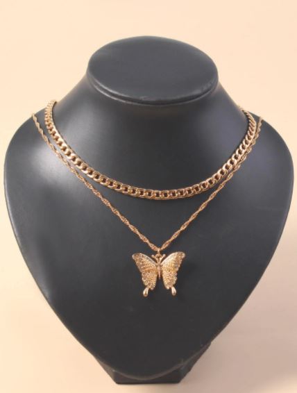 Collar de 2 piezas estilo casual, con diseño de mariposa, color dorado, material aleación.