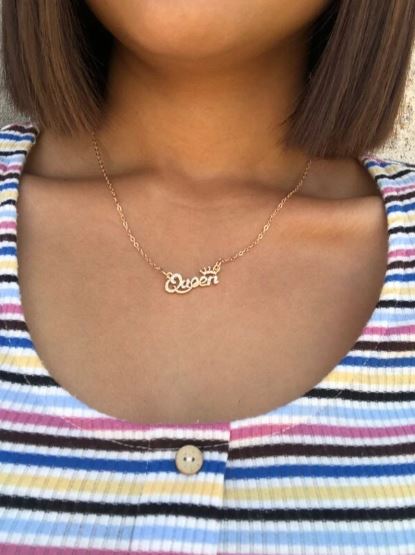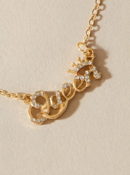 Collar colgante estilo casual, color dorado, tiene un diseño de letras grabadas con diamantes de imitación, material aleación.