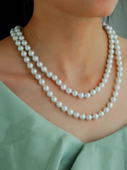 Lindo collar de perlas estilo glamour, color blanco, material 100% perlas.