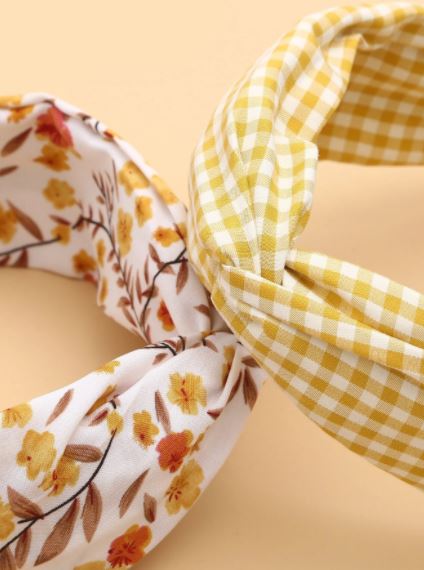 Set de diademas anchas estilo casual, se encuentran 2 estampados diferentes, tiene detalles en pliegos, material algodón y metal