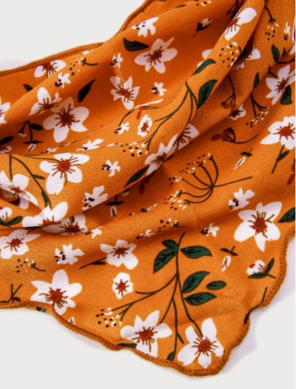 Pañuelo tipo bufanda casual, color naranja con estampado floral, 100% poliéster.