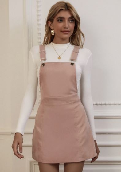 Vestido corto estilo preppy, se encuentran en 3 colores diferentes, con detalles de tirantes y botones, material 100% poliéster (poco elástico).