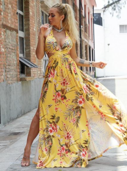 Lindo vestido maxi floral estilo casual, tiene detalles como escote en V, pijazo y tiene aberturas a los lados de la cintura, se encuentra en 2 colores diferentes, material 100% poliéster.